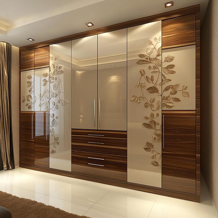 Thoughtfully planned wardrobe and storage solutions designed to maximize space and complement your bedroom interiors seamlessly.